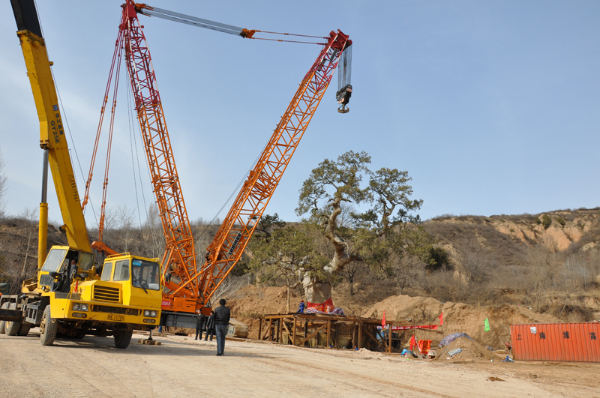 為確保吊裝成功,租用國內先進的650噸履帶吊車。